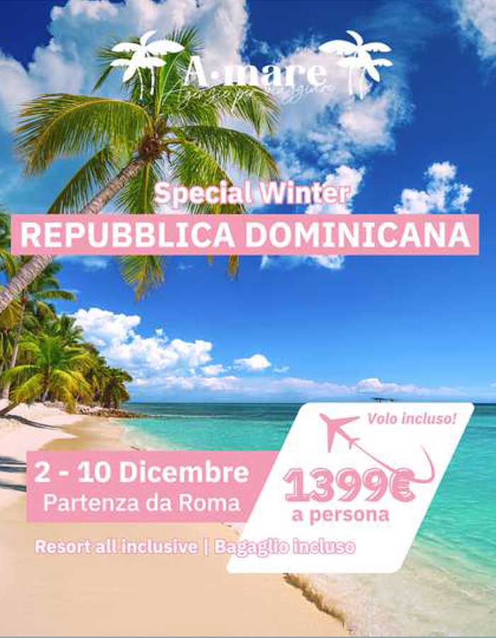 Quest’inverno regala spazio al sole, al mare e alla leggerezza. La Repubblica Dominicana ti aspetta con le sue spiagge bianche, la barriera corallina colorata e acque perfette per snorkeling e immersioni. Un viaggio per staccare, ricaricarti e vivere la magia dei Caraibi.